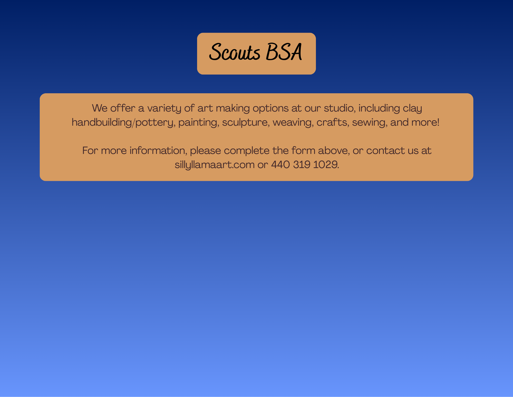Schedule a Class, Workshop or Camp🎨
